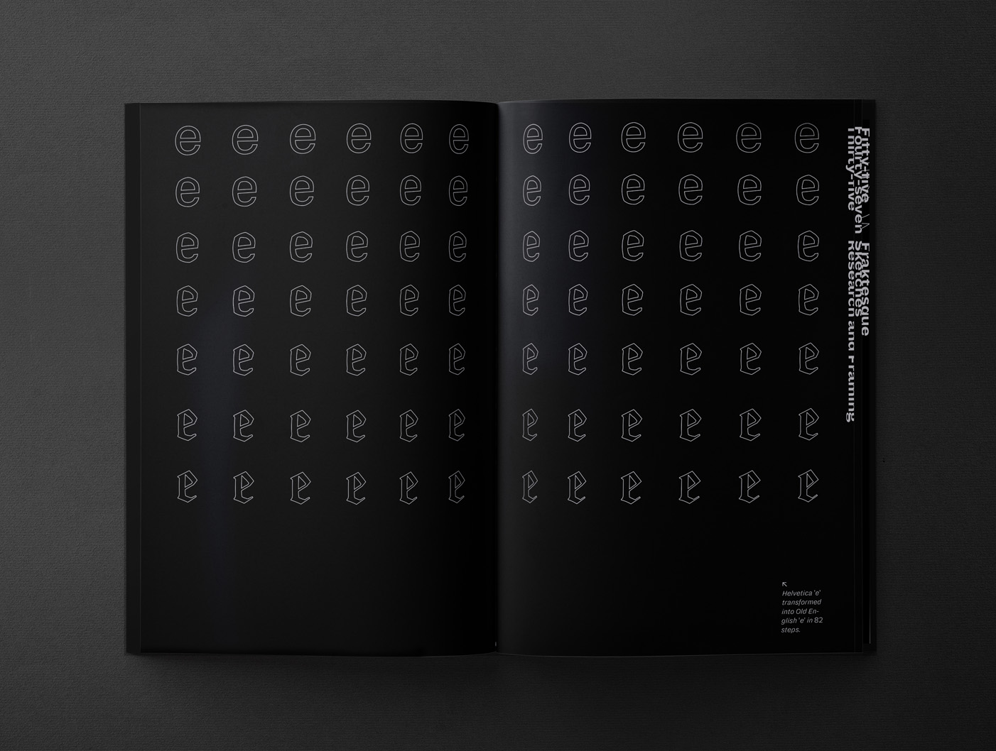 What has arisen out of this study, though small in scale, is a whole new world of letterforms. This typeface is far from finished—there are more good ideas left on the cutting room floor than would be feasible to include in this report. The typeface that has arisen is in its infancy and will surely develop as I continue this research. But the most important thing to come from this research is the proof that there is room yet in type design to think of letterforms in new ways. This method of innovating on traditional letterforms has given rise to what I would contest are truly new forms—not just personal takes on what a font should feel like. For that, I’m overjoyed to present this typeface and its potential to carve out its own niche in graphic design.