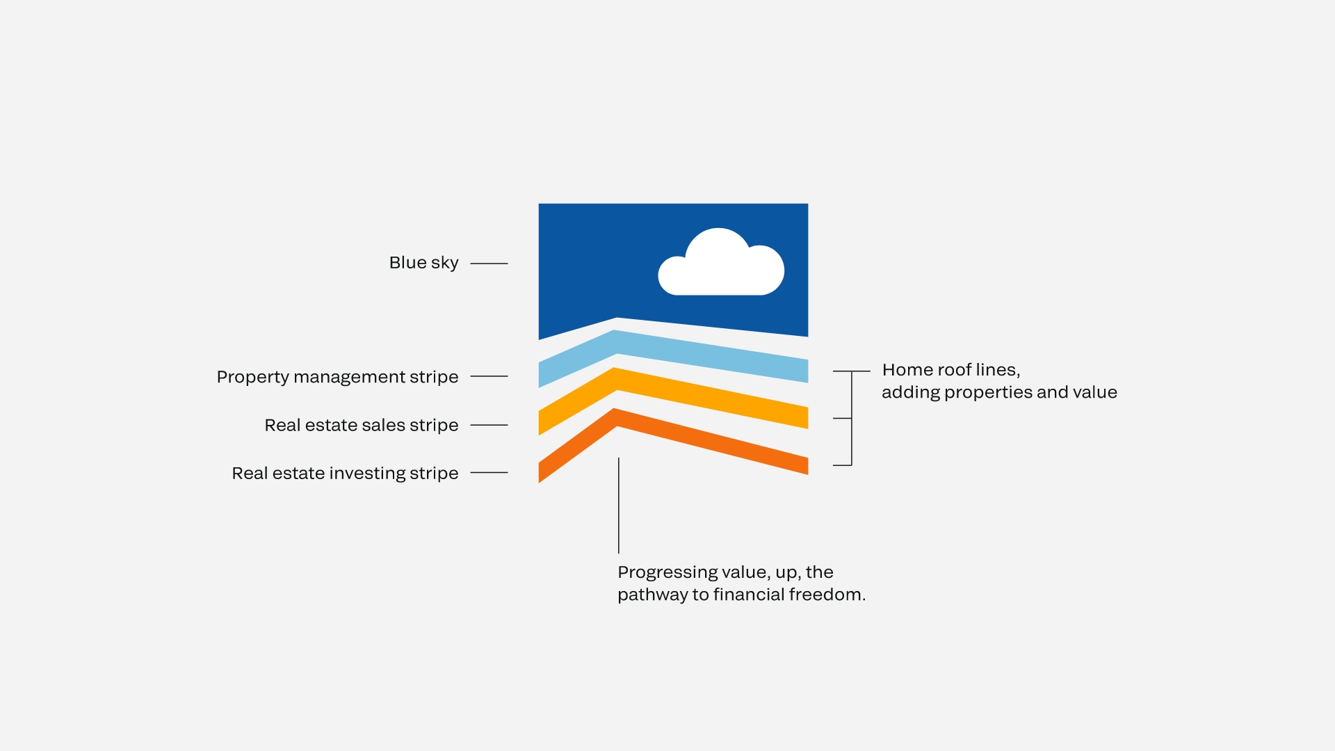 For the visual identity, everyone wanted to avoid the cliche “house” visual often attached to real estate companies. Instead, we kept with the motif of an “ideal outcome” and married it with the new name: the logo is a blue sky of hope, opportunity, and potential. The sky elements, the cloud, and three additional lines give the brand its graphic language that is applied in all visual areas.