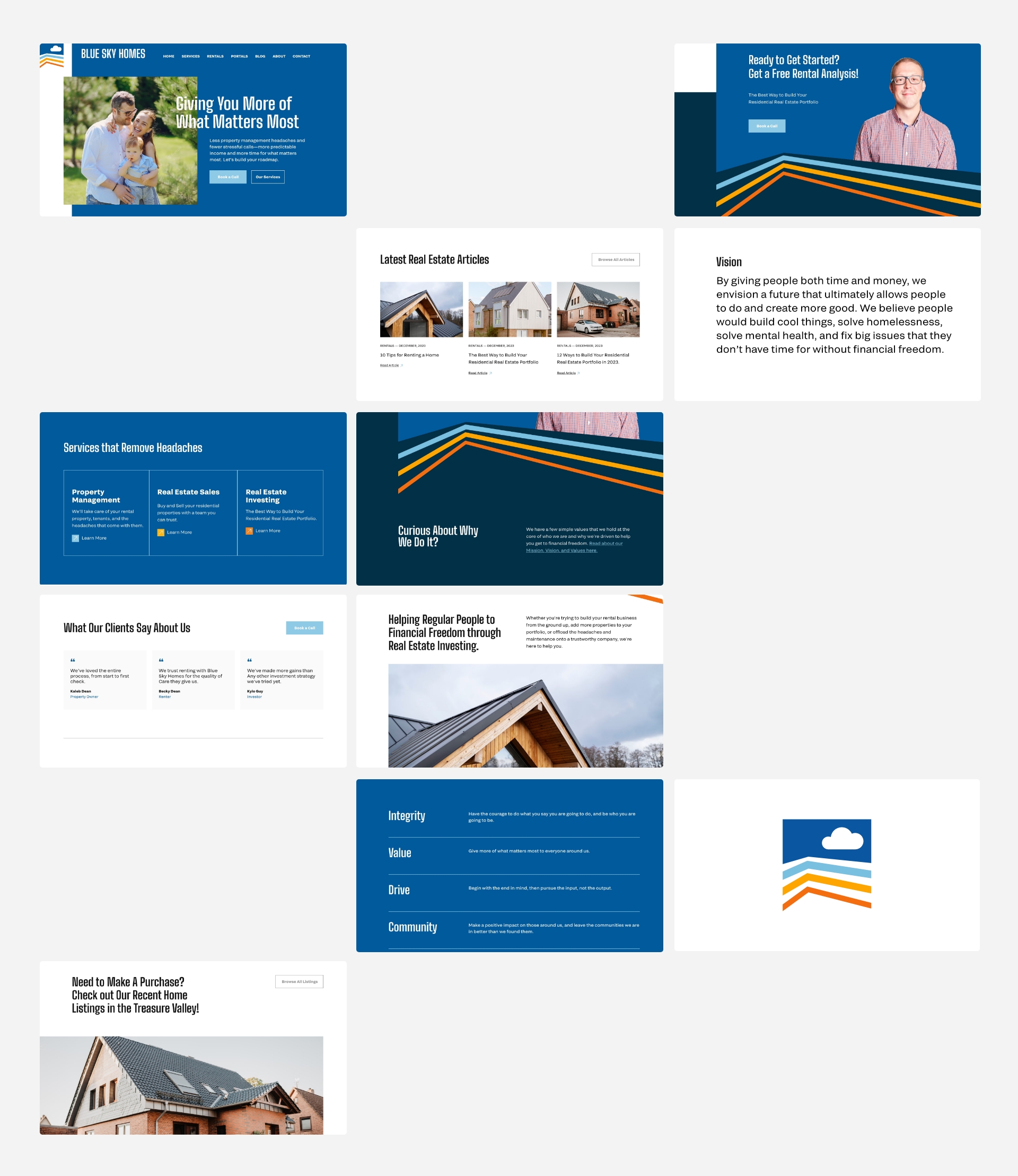 With the housing market heating up in Idaho, Blue Sky Homes approached Studio Ostendo about launching a new brand identity that would not only capture the booming real estate business but also allow them to develop their property management and real estate investing platforms.