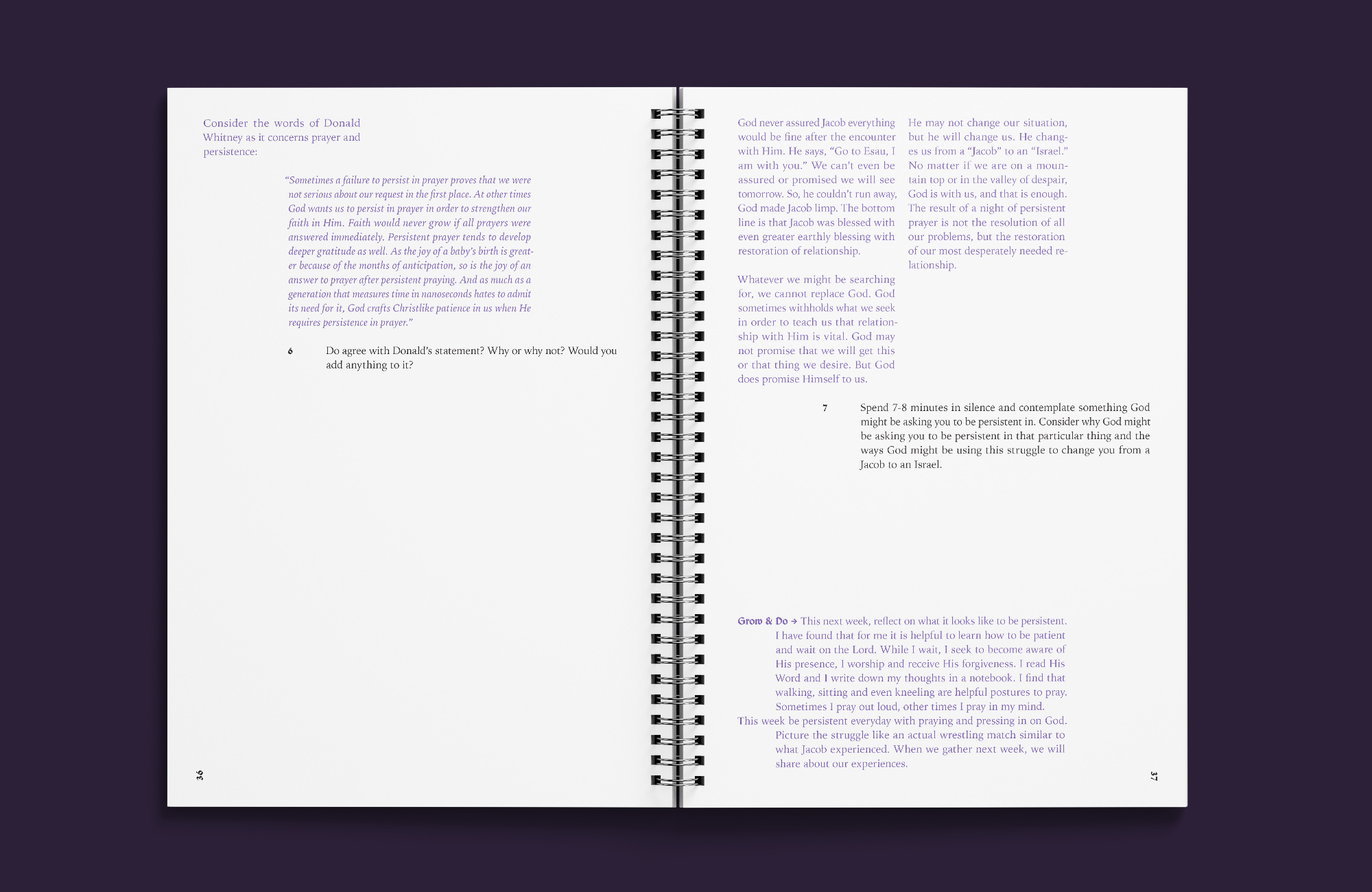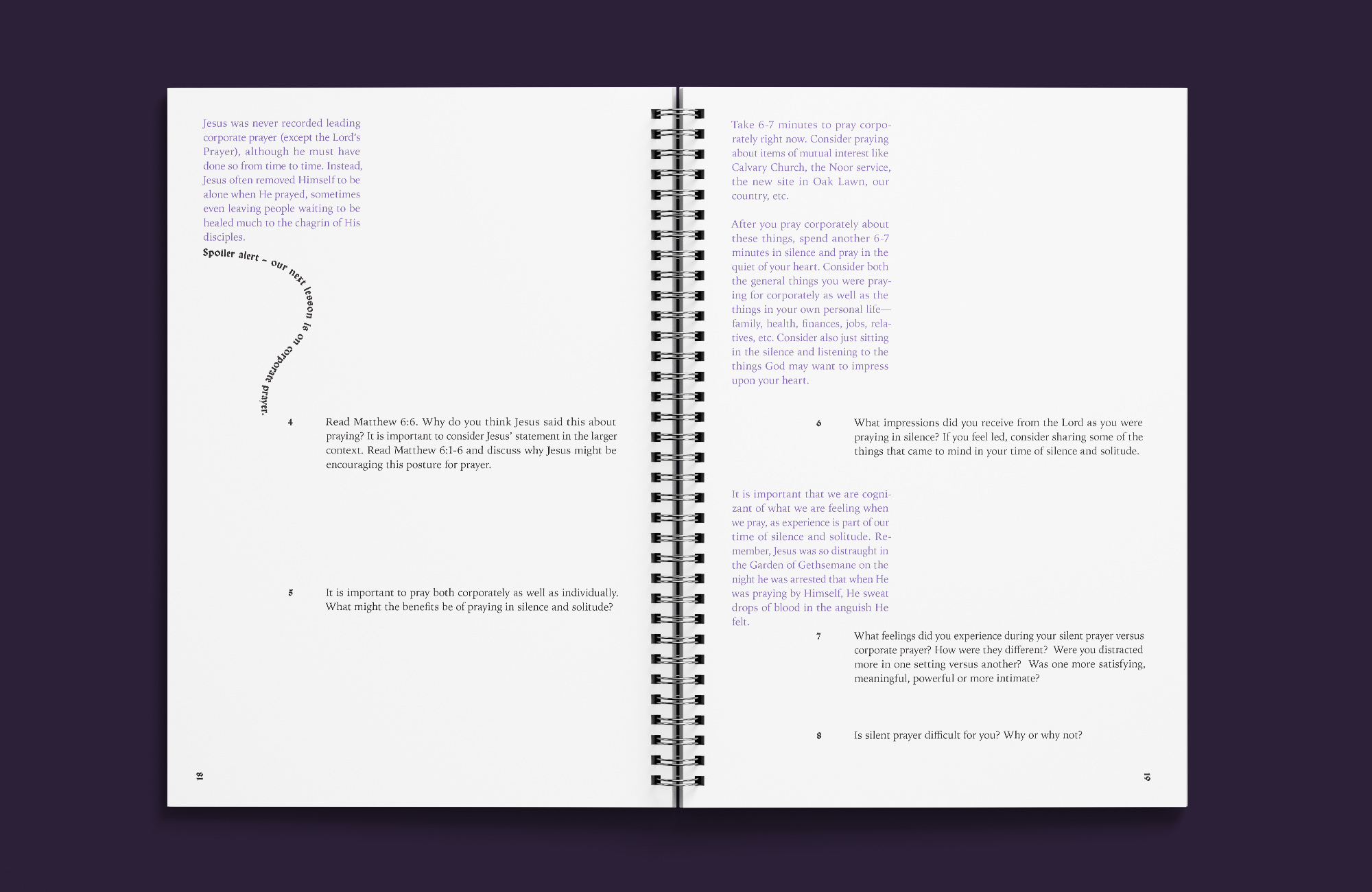 For their summer series, they began making efforts to bring its community together in prayer by hosting a different style connect group than it usually does. For this, they asked Pen and Lens to design a guidebook that broke from the traditional look of connect groups books.