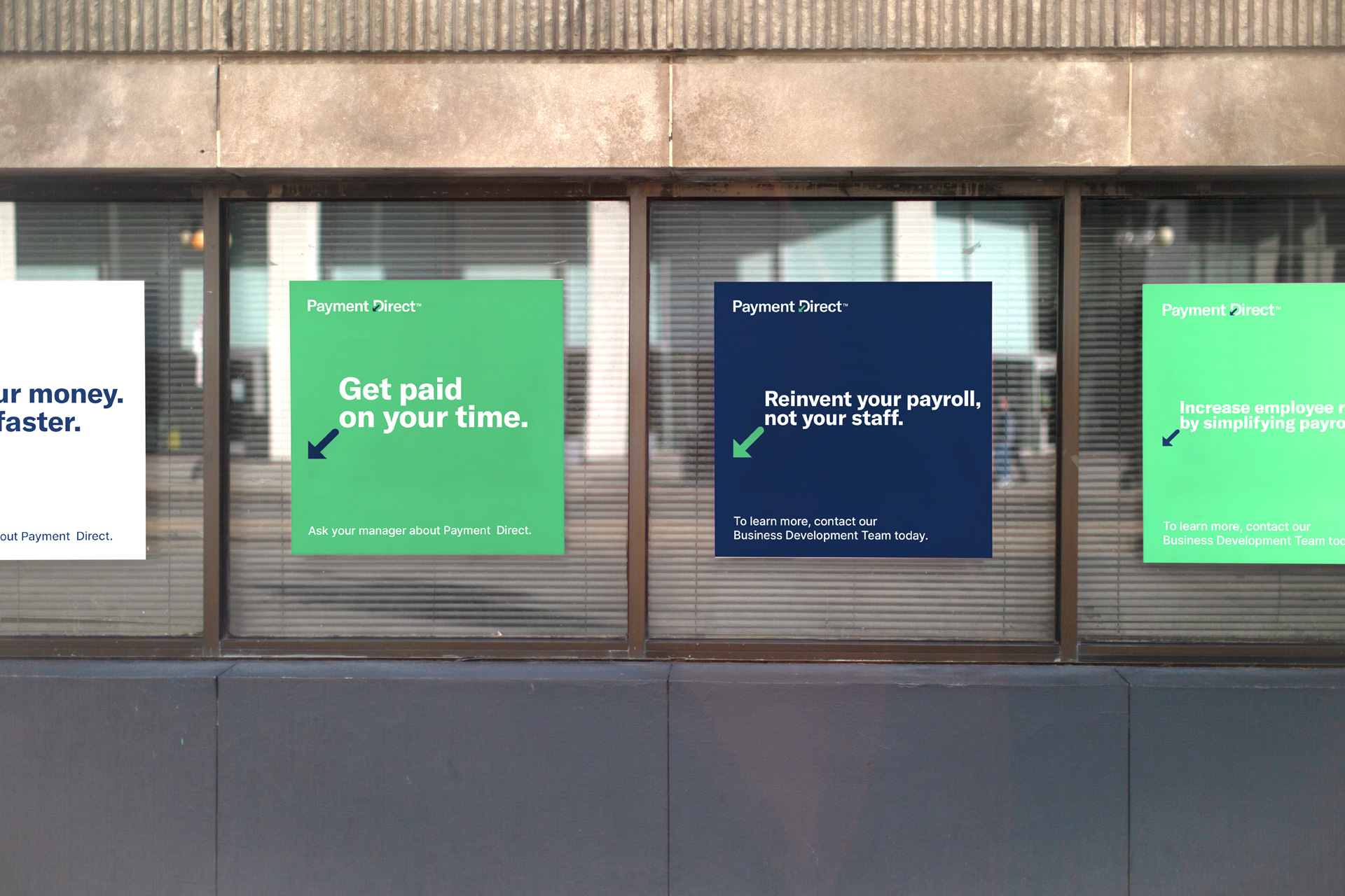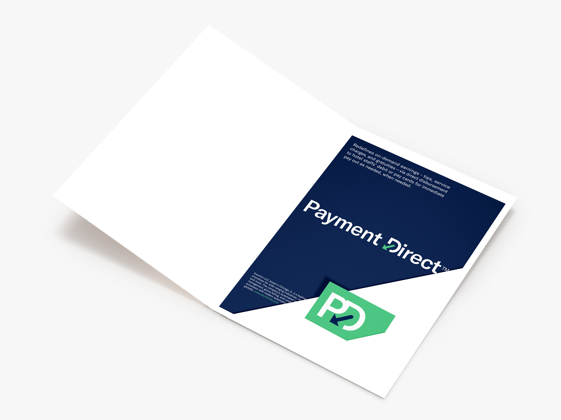 Studio Ostendo worked with Evention to develop a simple and expansive brand that speaks to both HR managers and service workers. The simple design hides a coercive and comprehensive messaging strategy that encompasses both audiences. With marketing materials that speak to all users, Payment Direct was able to launch with a voice that connected directly to their ideal customers.